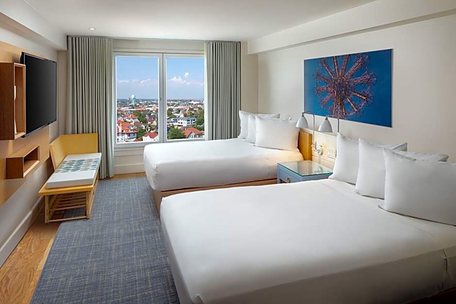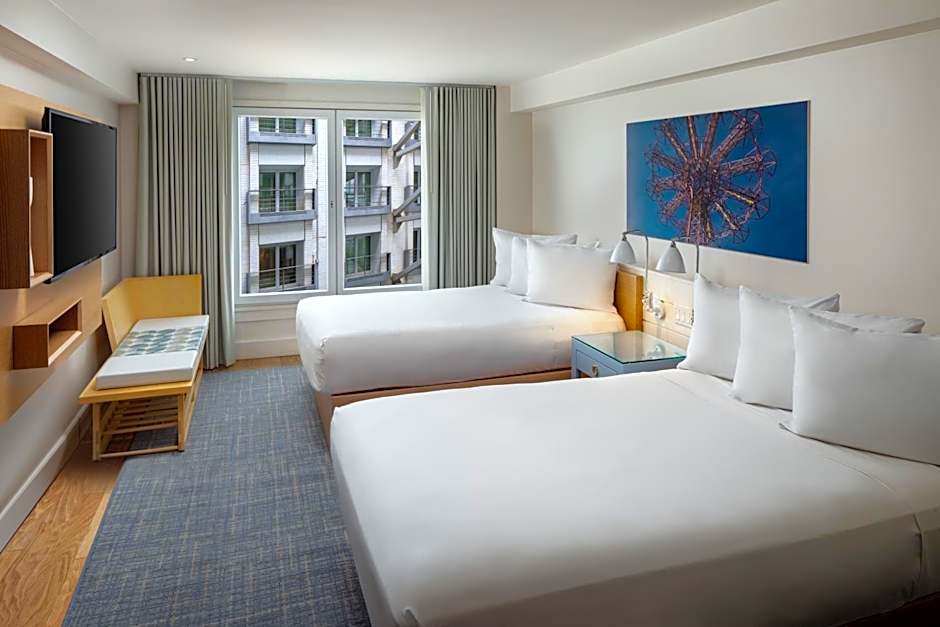 The suite features a tea and coffee maker and a quiet street view. The unit has 2 beds.